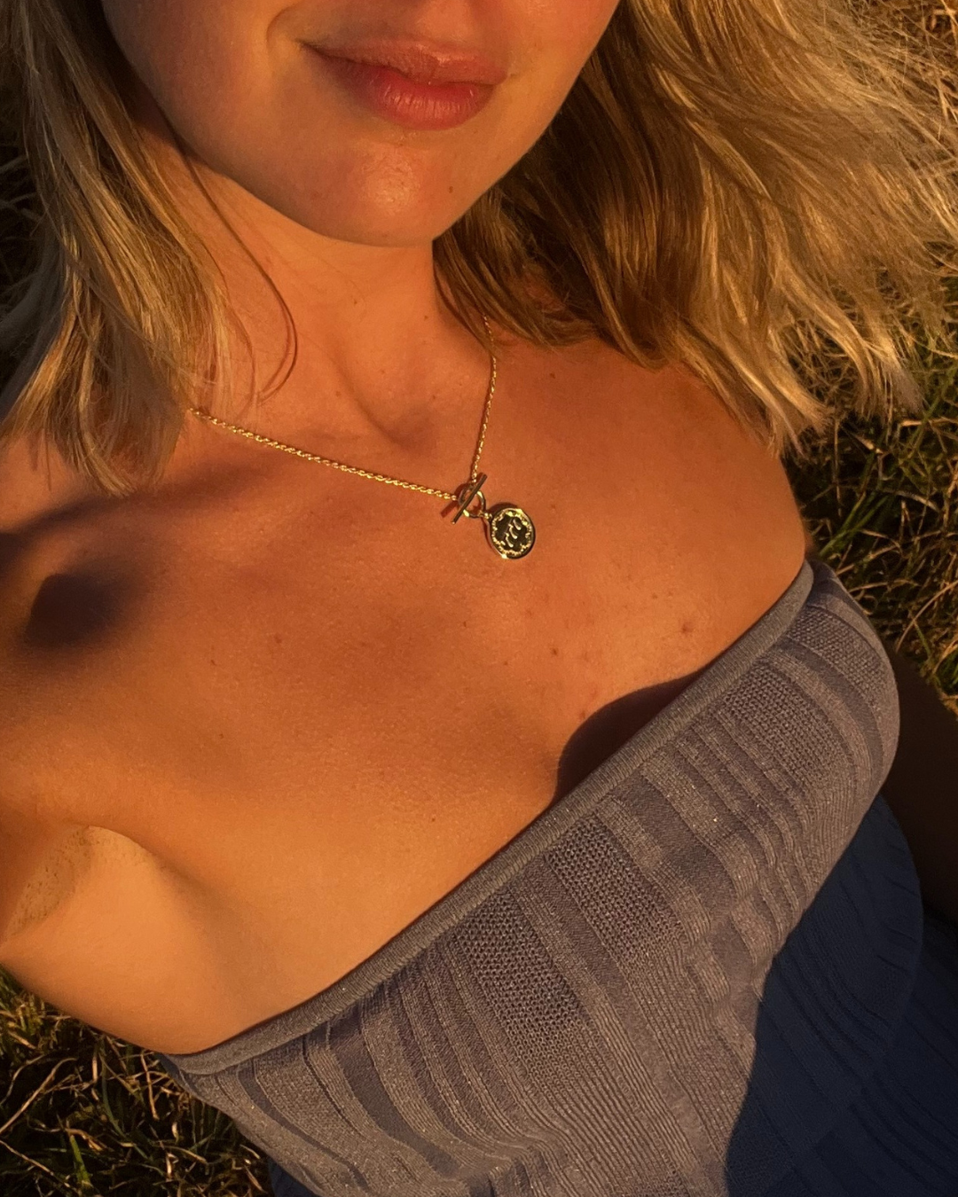 This was bought as a gift from my son to me, we both loved it and I haven’t really taken it off since Christmas. The only time it off my neck is in the showers or sun tanning.