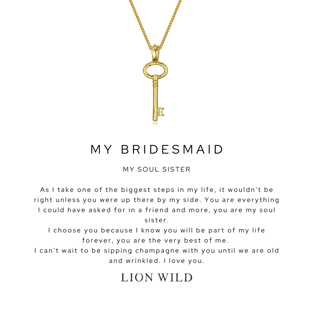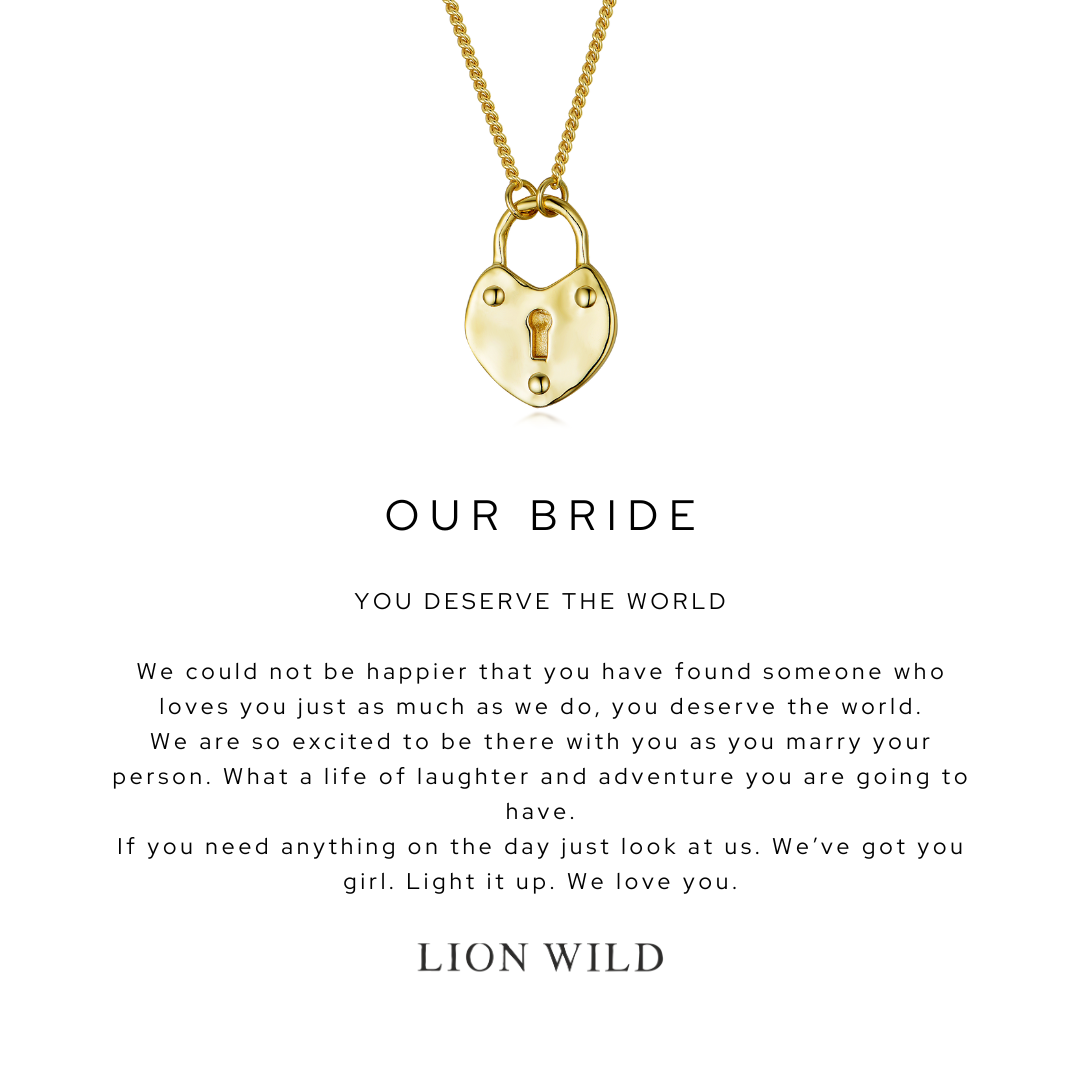 "As the owner of Lion Wild, it was nothing short of magic to design pieces for my bridal party. I designed a love heart lock for myself as the bride and delicate key necklaces for my bridesmaids. They looked perfect on the day and I loved feeling so connected to my girls!"